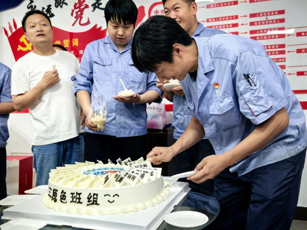 學(xué)習(xí)結(jié)束后,就進入了第二個班組活動——回顧往昔,慶?!叭比龤q生日。磨工班組的成員們齊聲喊出“磨工班組三歲啦!”,有人趕忙去拿蛋糕,有人忙著搬桌子,還有人拆蛋糕包裝。組員彭高和高強小心翼翼地拿著蛋糕轉(zhuǎn)來轉(zhuǎn)去,認(rèn)真找著合適的角度,想把這開心的一刻拍下來留作紀(jì)念。作為這個大家庭的一員,每個人都在用心為這場慶祝活動出力,充分展現(xiàn)出團隊的凝聚力 。