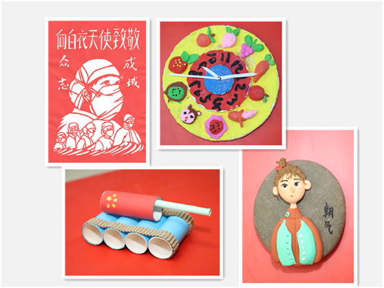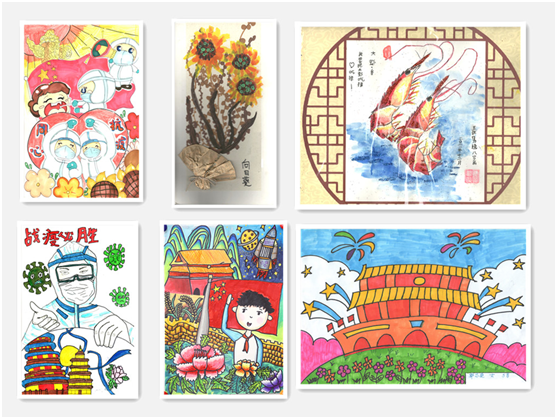 此次征集活動共收到作品91件,其中不僅有硬筆、毛筆、蠟筆、水粉畫、景物素描等書繪類創(chuàng)作,還有色彩斑斕的手工作品。孩子們用手工展現(xiàn)童心世界,用畫筆贊美抗擊新冠肺炎疫情的英雄,用丹青書寫中華文化。作品表現(xiàn)力強,充滿奇思妙想,全面展示出孩子們豐富的想象力和動手能力,表現(xiàn)出新時代少年兒童的別樣風采。